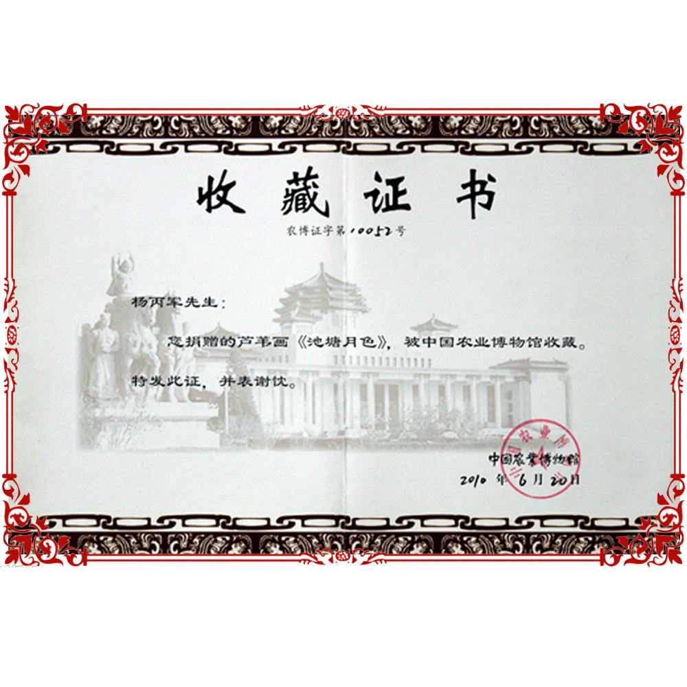 2010年中国农业博物馆收藏证书