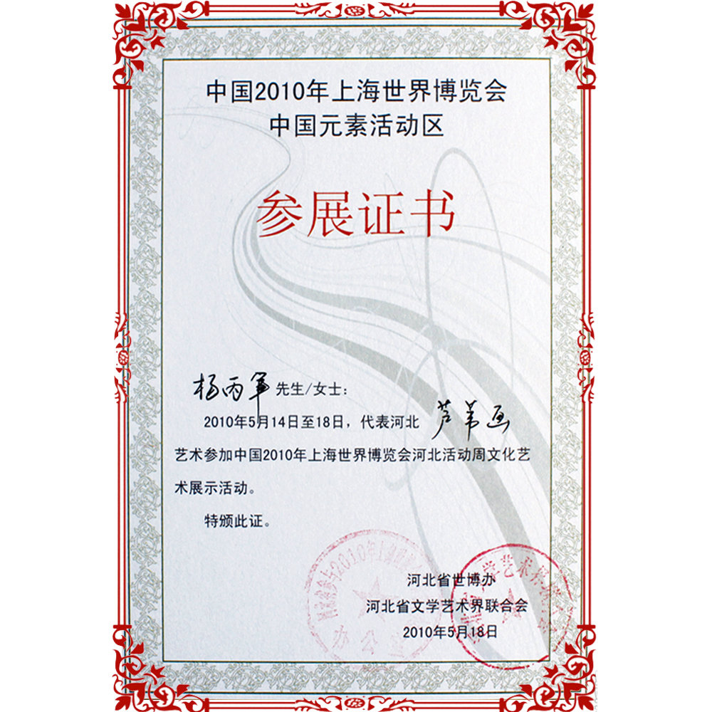 中国2010年上海世界博览会参展证书
