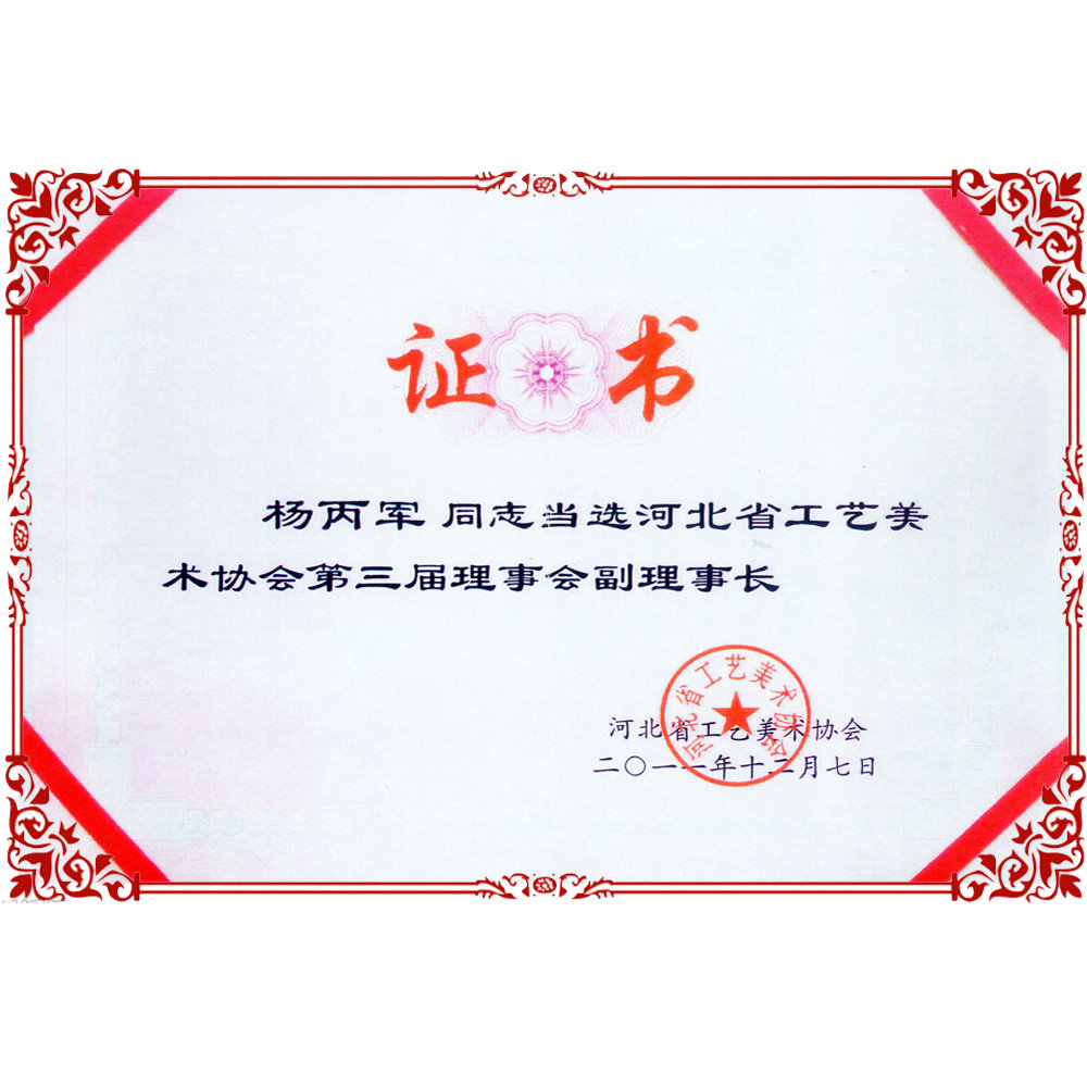 2011年河北省工艺美术协会第三届理事会副理事长