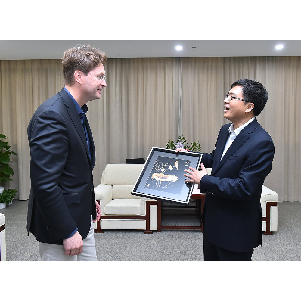 新区党政办主任将芦苇画赠与国际友人